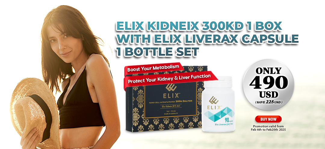 Elix Kidneix 300kD 1 Box with Elix Liverax Capsule 1 Bottle set Only 490USD